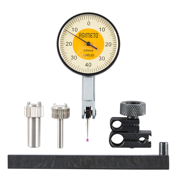 Индикатор рычажно-зубчатый горизонтальный Asimeto 502-08-7 в наборе с комплектом аксессуаров предназначен для абсолютных и относительных измерений линейных размеров, контроля отклонений от заданной геометрической формы и взаимного расположения поверхностей.