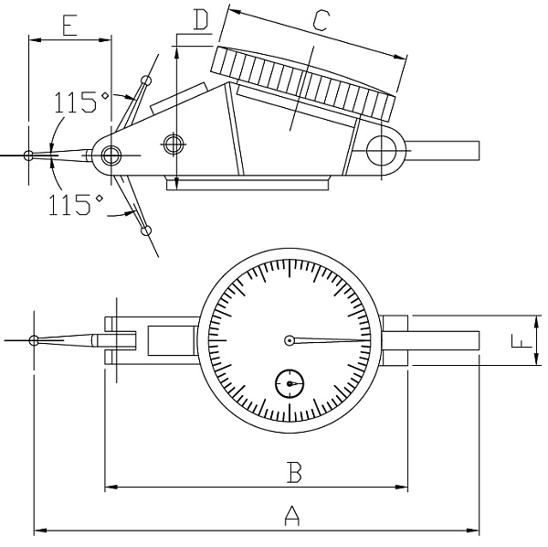 Данный тип индикатора оснащен шкалой, размещенной перпендикулярно оси измерительного рычага в среднем положении.