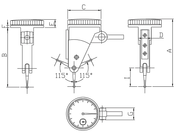 Данный тип индикатора оснащен шкалой, размещенной перпендикулярно оси измерительного рычага в среднем положении.
