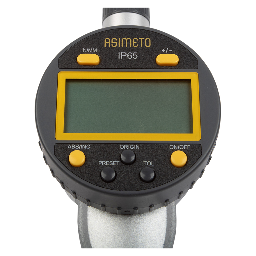 Головка измерительная цифровая (ИЦ) ASIMETO предназначена для измерения линейных размеров абсолютным и относительным методами, а также для определения величины отклонений от заданной геометрической формы и взаимного расположения поверхностей. Показания выводятся на цифровой дисплей.