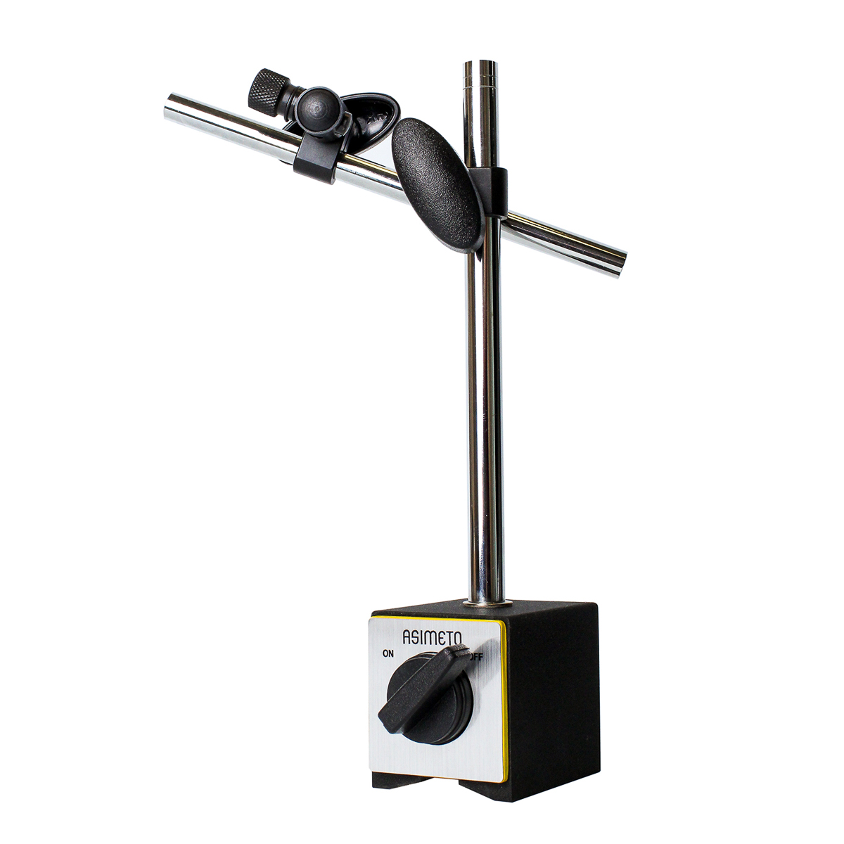 Стойка спроектирована таким образом, что позволяет закреплять индикаторный инструмент с размерами стержня 8 мм и 3/8" дюйма.