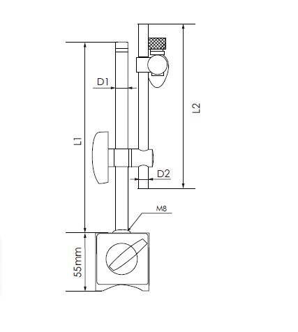 Стойка спроектирована таким образом, что позволяет закреплять индикаторный инструмент с размерами стержня 8 мм и 3/8" дюйма.