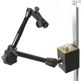 Точно изготовленные поверхности с призматическим основанием с помощью сильного магнита позволяют прочно закрепить стойку на металлических поверхностях без дополнительных креплений.