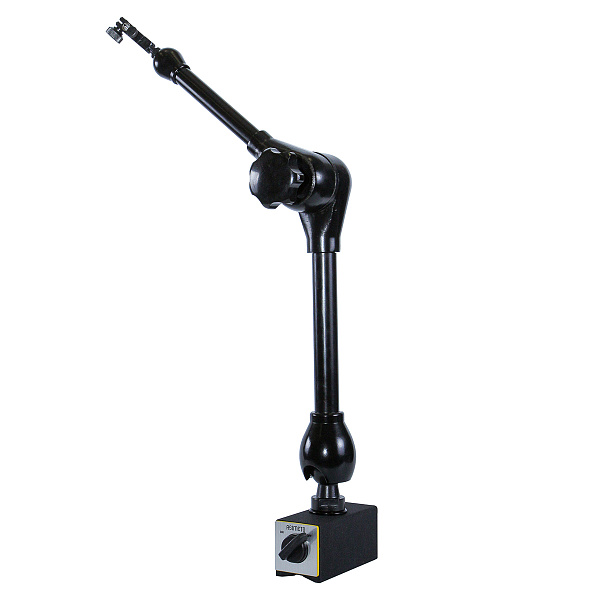 Механический магнитный измерительный штатив с механической фиксацией из одной точки. Все три сочленения зажимаются одной поворотной рукояткой. Зажимное усилие плавно и надежно регулируется. Шаровые шарниры обеспечивают быстрое и простое позиционирование.