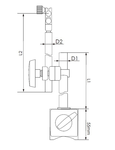 Стойка спроектирована таким образом, что позволяет закреплять индикаторный инструмент с размерами стержня 8 мм и 3/8" дюйма.