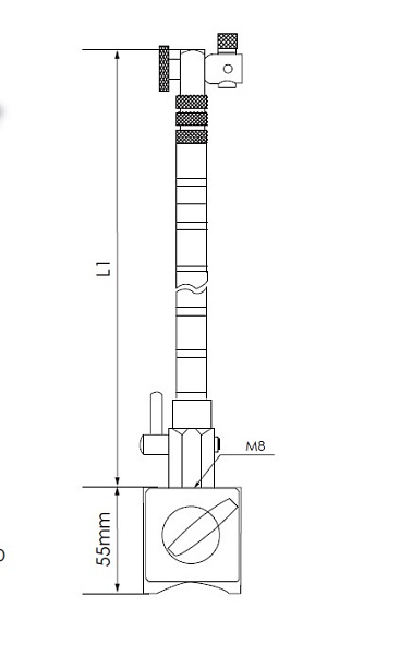 Стойка спроектирована таким образом, что позволяет закреплять индикаторный инструмент с размерами стержня 8 мм и 3/8" дюйма.