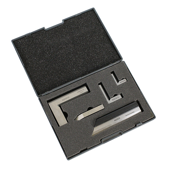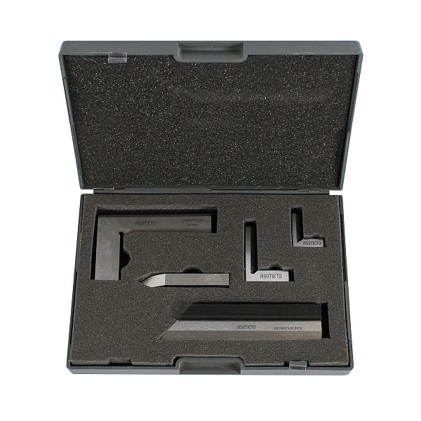 Набор измерительных инструментов ASIMETO 639-00-8 предназначен для проверки прямоты поверхности и разметки прямых углов, а также для контроля перпендикулярности расположения деталей.