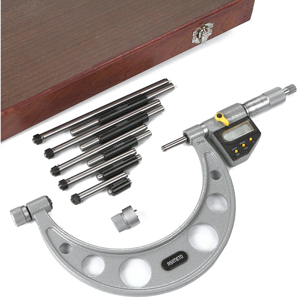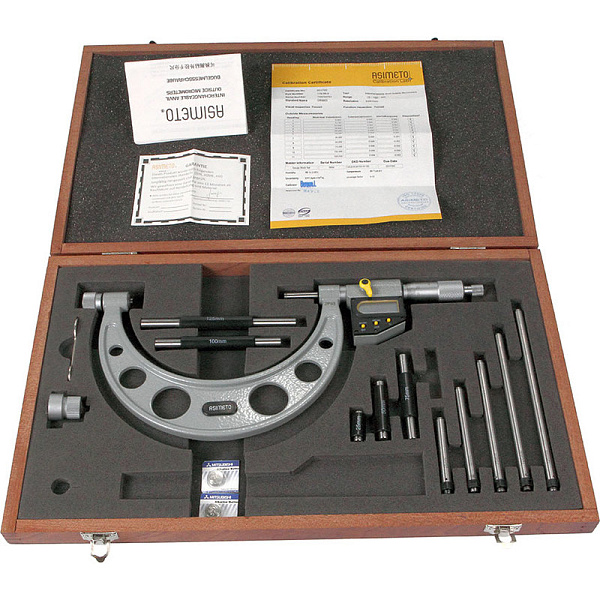 Микрометр для больших измерений цифровой со сменными штифтами Asimeto 115-06-0-П - универсальный прибор для измерений линейных размеров абсолютным или относительным контактным методом с низкой погрешностью. Преобразовательным механизмом является микропара “винт - гайка”.