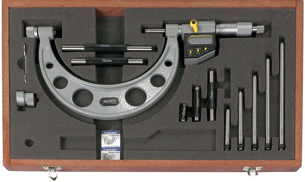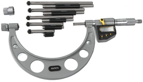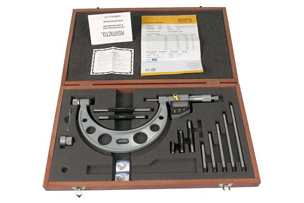 Микрометр для больших измерений цифровой со сменными штифтами Asimeto 115-12-6-П - универсальный прибор для измерений линейных размеров абсолютным или относительным контактным методом с низкой погрешностью. Преобразовательным механизмом является микропара “винт - гайка”.