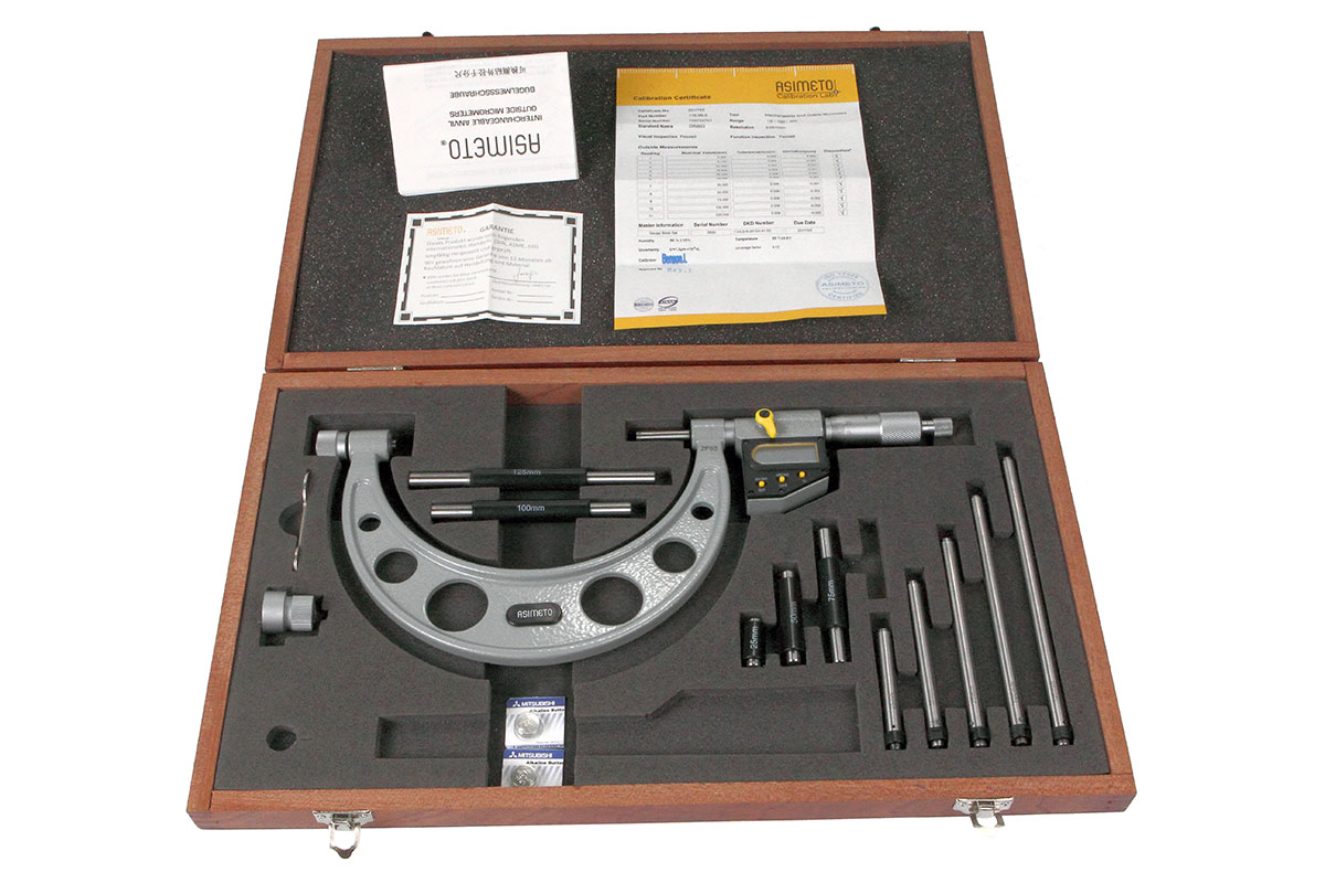 Микрометр для больших измерений цифровой со сменными штифтами Asimeto 115-16-0 - универсальный прибор для измерений линейных размеров абсолютным или относительным контактным методом с низкой погрешностью. Преобразовательным механизмом является микропара “винт - гайка”.