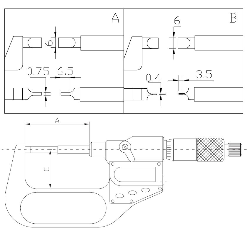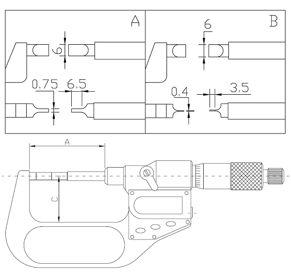 Микрометр с ножевыми измерительными поверхностями цифровой 0,001 мм, 0-25 мм, тип А с поверкой