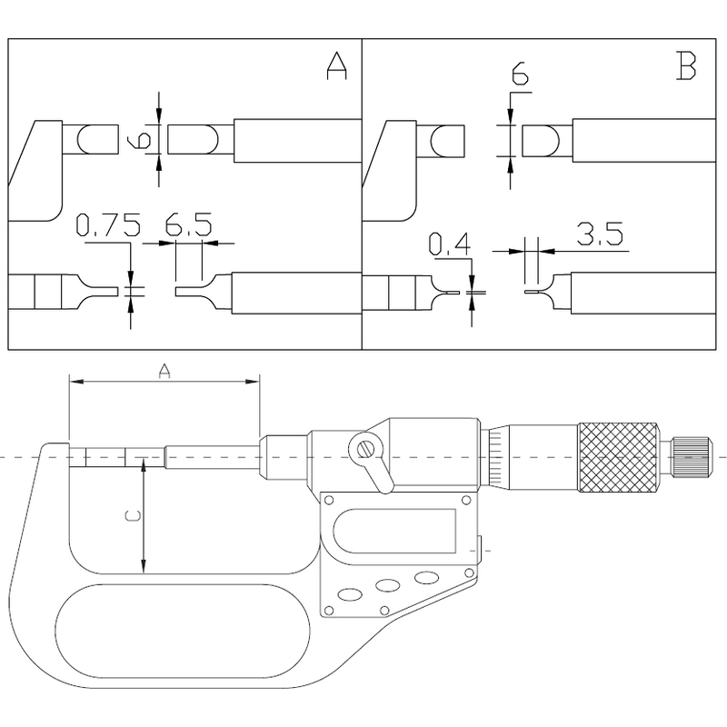 Микрометр с ножевыми измерительными поверхностями цифровой 0,001 мм, 0-25 мм, тип В с поверкой