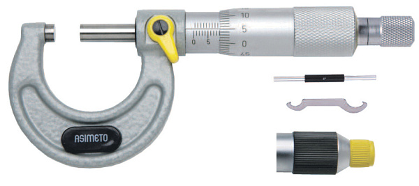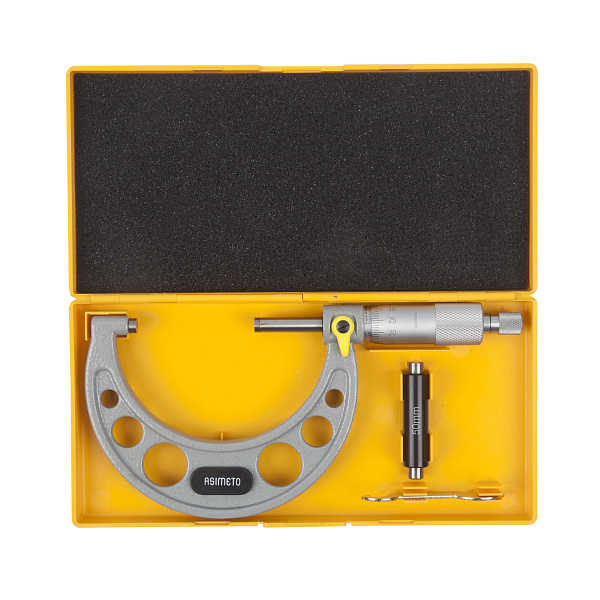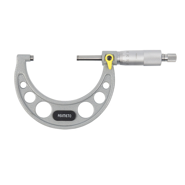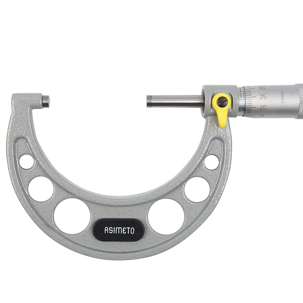 Микрометр гладкий механический для наружных измерений со скобой Asimeto 101-01-2 - универсальный прибор для измерений линейных размеров абсолютным или относительным контактным методом с низкой погрешностью в области малых размеров. Преобразовательным механизмом является микропара “винт - гайка”.