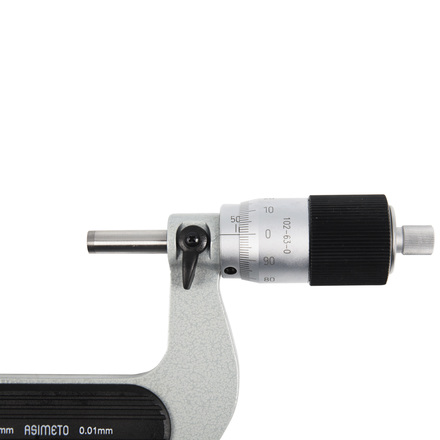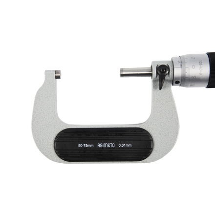 Микрометр гладкий механический для наружных измерений с трещоточным барабаном Asimeto 102-62-0-П - универсальный прибор для измерений линейных размеров абсолютным или относительным контактным методом с низкой погрешностью в области малых размеров. Преобразовательным механизмом является микропара “винт - гайка”.