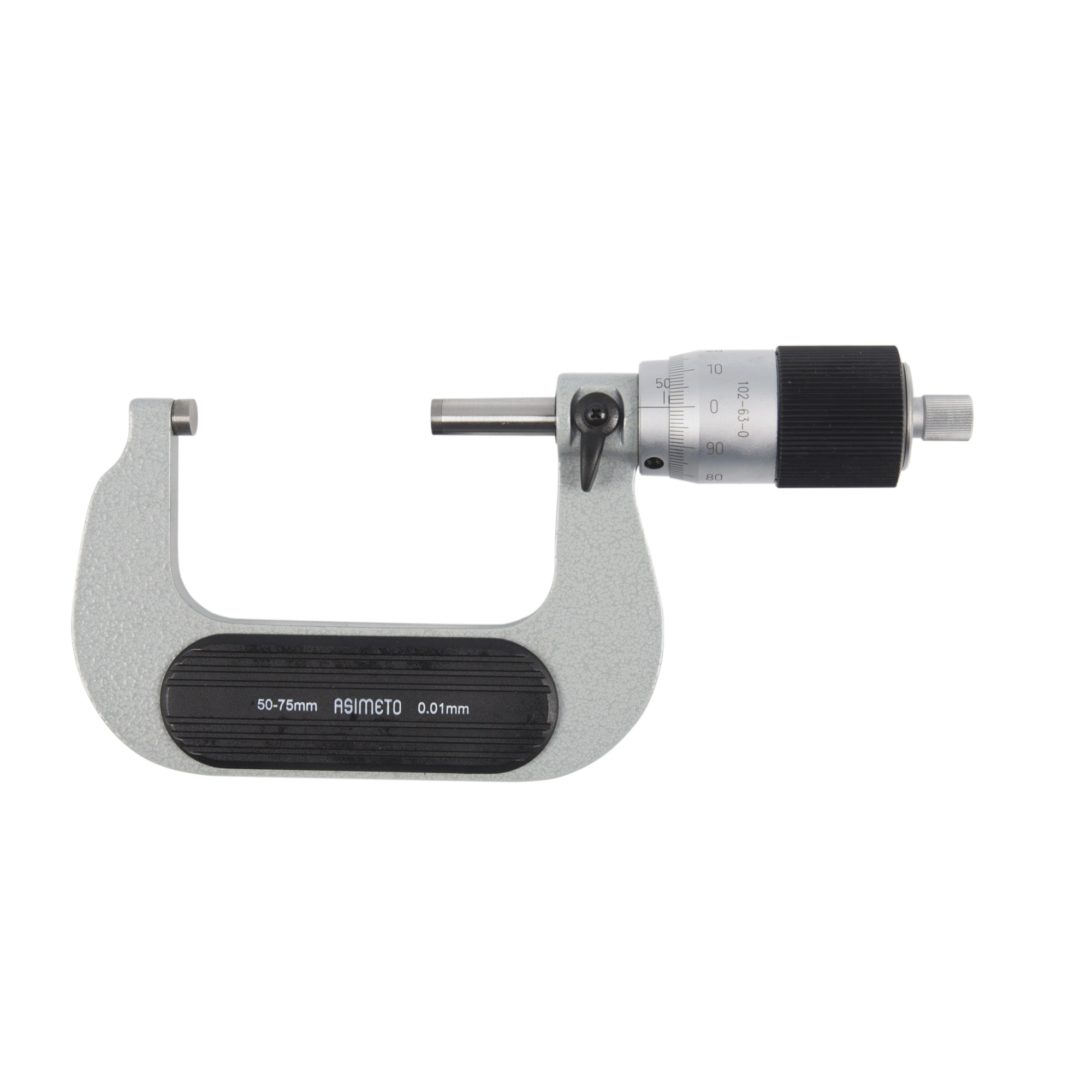 Микрометр гладкий механический для наружных измерений с трещоточным барабаном Asimeto 102-63-0 - универсальный прибор для измерений линейных размеров абсолютным или относительным контактным методом с низкой погрешностью в области малых размеров. Преобразовательным механизмом является микропара “винт - гайка”.