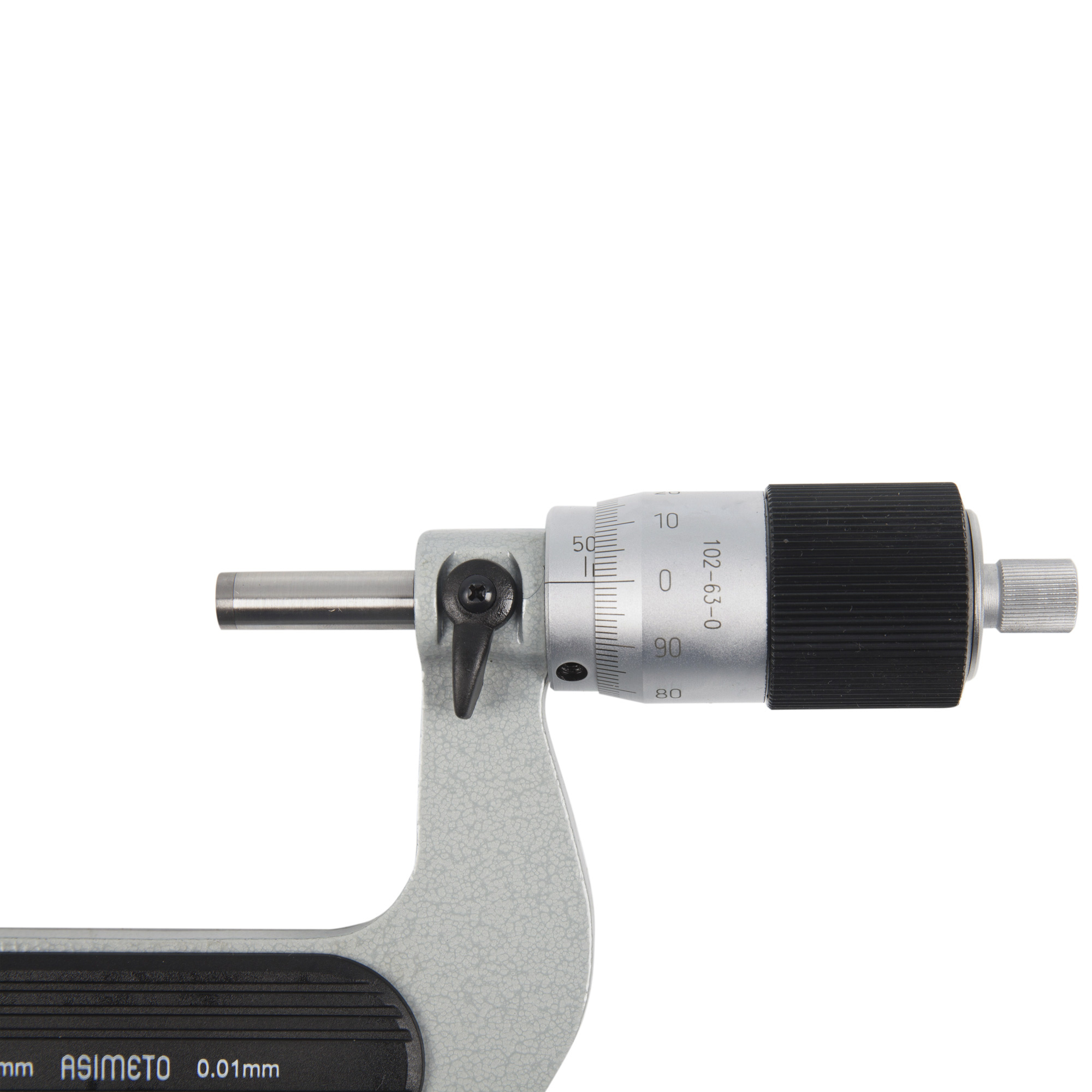 Микрометр гладкий механический для наружных измерений с трещоточным барабаном Asimeto 102-63-0 - универсальный прибор для измерений линейных размеров абсолютным или относительным контактным методом с низкой погрешностью в области малых размеров. Преобразовательным механизмом является микропара “винт - гайка”.