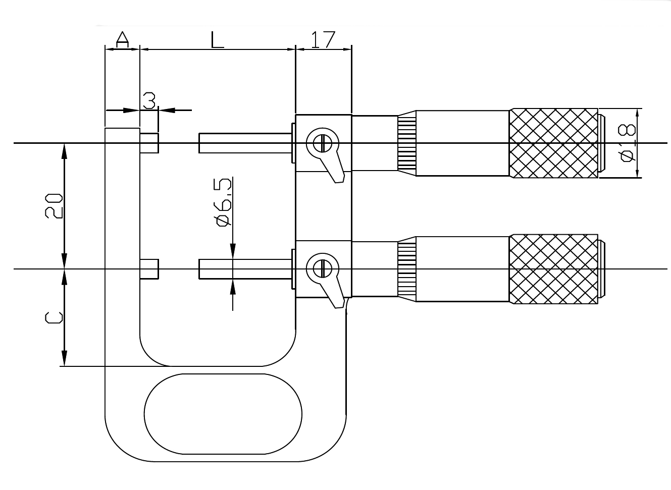 Стопоры с храповым механизмом позволяет точно фиксировать полученные значения. Регулировочные шкалы на корпусе и барабане выполнены методом лазерной гравировки и четко видны даже при недостаточном освещении. Используется в качестве регулируемой калибр-скобы ПР/НЕ, с установкой верхней и нижней границы поля допуска.