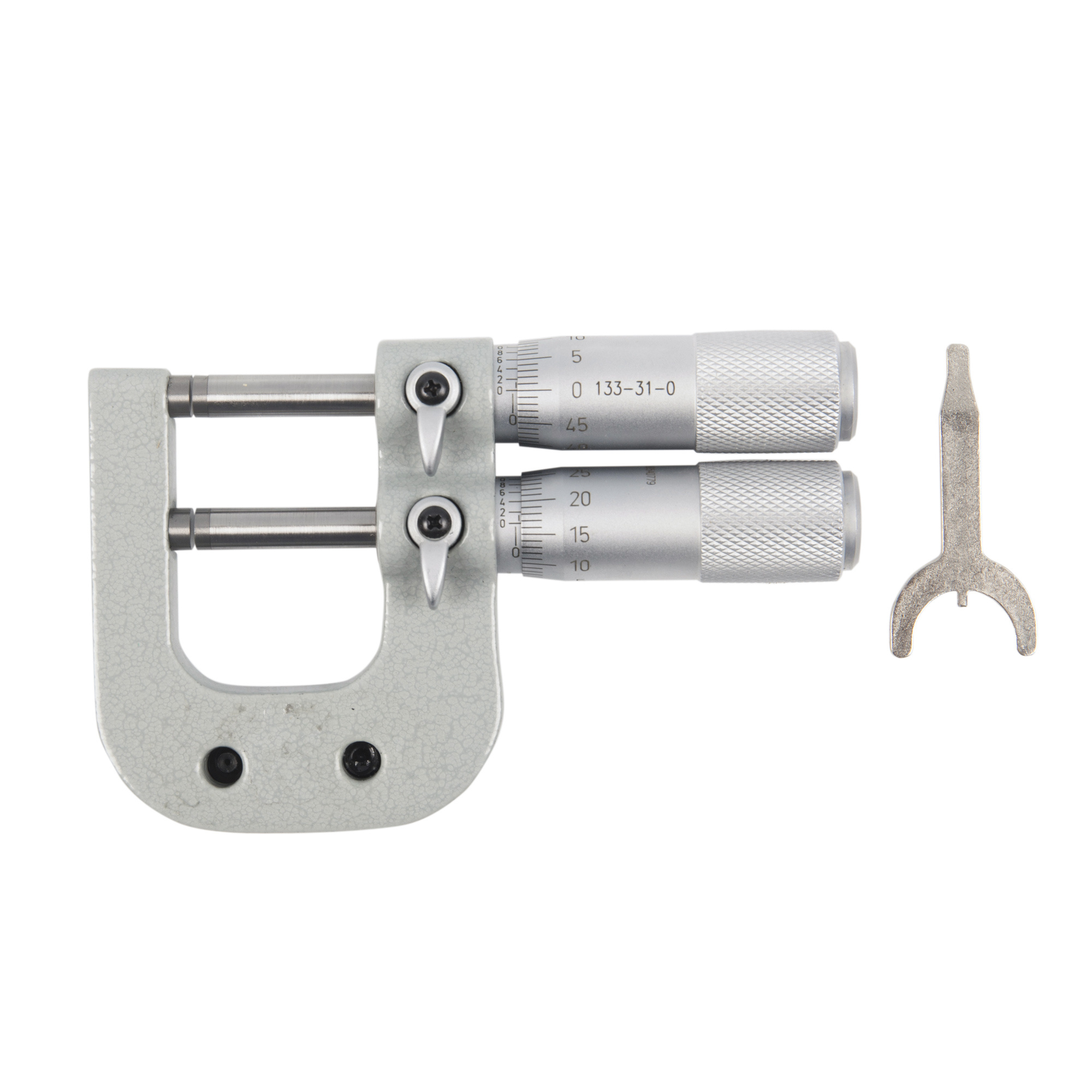 Микрометр гладкий механический предельный для наружных измерений с двумя измерительными штифтами Asimeto 133-31-0 - универсальный прибор для измерений линейных размеров абсолютным или относительным контактным методом с низкой погрешностью в области малых размеров. Преобразовательным механизмом является микропара “винт - гайка”.