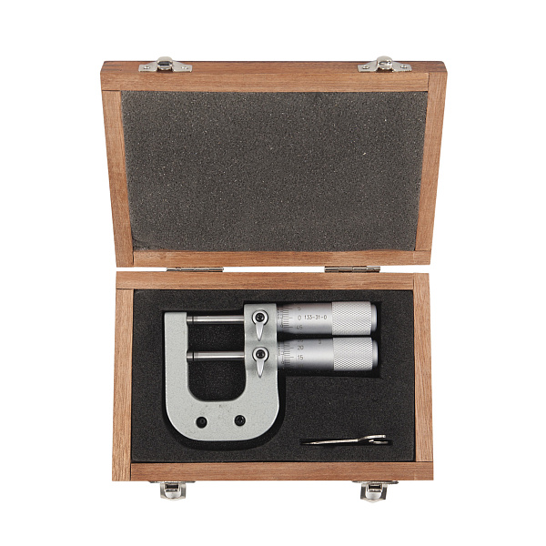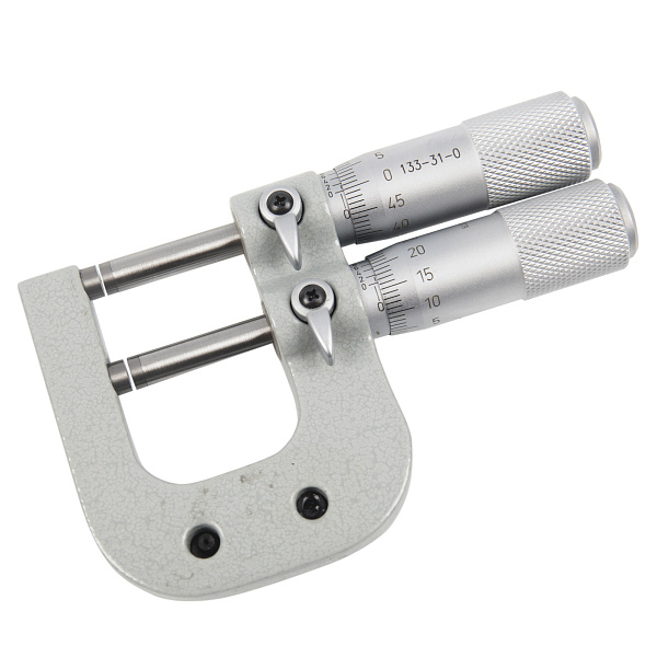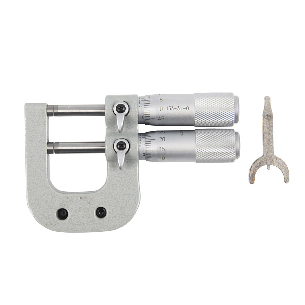 Микрометр гладкий механический предельный для наружных измерений с двумя измерительными штифтами Asimeto 133-32-0 - универсальный прибор для измерений линейных размеров абсолютным или относительным контактным методом с низкой погрешностью в области малых размеров. Преобразовательным механизмом является микропара “винт - гайка”.