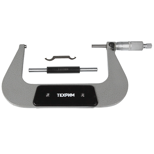 Микрометр гладкий механический для наружных измерений ТЕХРИМ T050010 - универсальный прибор для измерений линейных размеров абсолютным или относительным контактным методом с низкой погрешностью в области малых размеров. Преобразовательным механизмом является микропара “винт - гайка”.