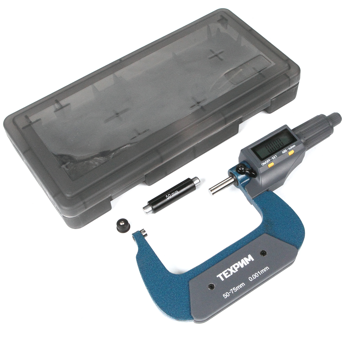 Микрометр гладкий цифровой для наружных измерений ТЕХРИМ T050013 - универсальный прибор для измерений линейных размеров абсолютным или относительным контактным методом с низкой погрешностью в области малых размеров. Преобразовательным механизмом является микропара “винт - гайка”.