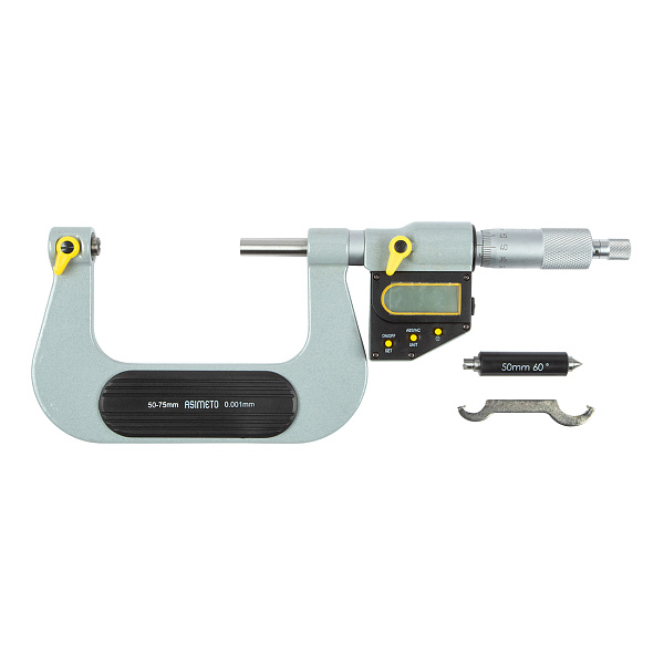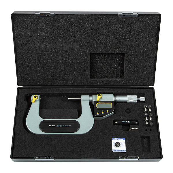 Микрометр для измерения резьбы цифровой IP65 со вставками 0,001 мм, 50-75 мм