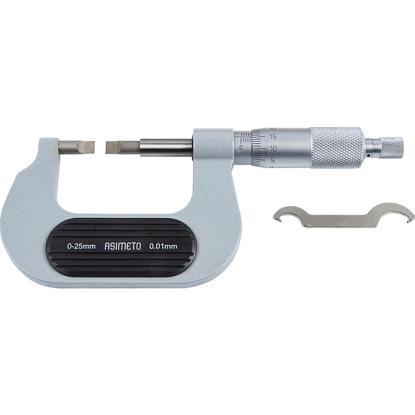 Винтовая пара проходит несколько стадий обработки, в том числе шлифовку и полировку. Благодаря этому стебель микрометра вращается легко и без заеданий, а винтовая пара не имеет зазоров.
