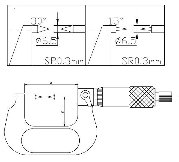 Микрометр с точечными измерительными поверхностями 0,01 мм, 0-25 мм, наконечник 30°