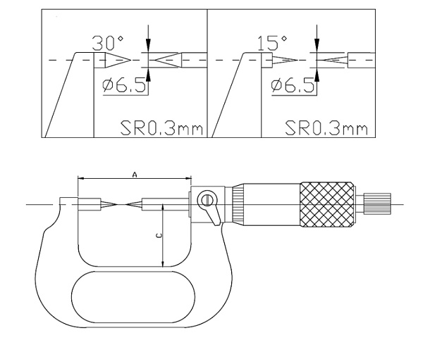 Микрометр с точечными измерительными поверхностями 0,01 мм, 75-100 мм, наконечник 15°