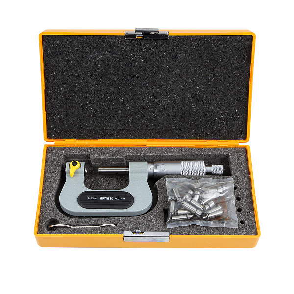 Микрометр универсальный со сменными наконечниками 0.01 мм, 0-25 мм