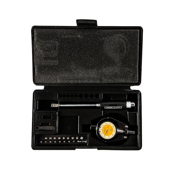 Комплект из 11 предметов в пластиковом футляре позволяет производить замеры в труднодоступных местах. Диапазон измерений 10-18 мм.