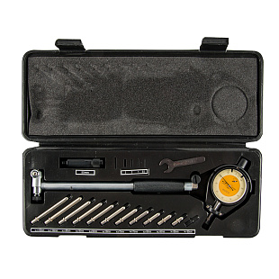 Комплект из 19 предметов в пластиковом футляре позволяет производить замеры в труднодоступных местах. Диапазон измерений 50-160 мм.