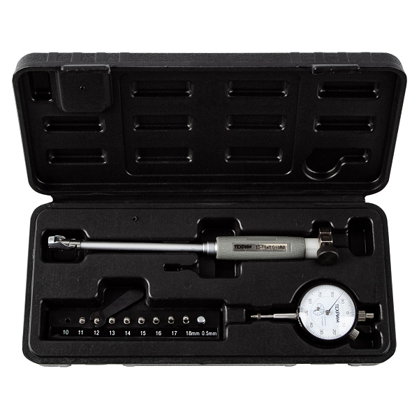Нутромер индикаторный ТЕХРИМ T050029 предназначен для измерения внутренних размеров изделий способом двухточечного контакта с измеряемыми поверхностями относительным методом. Отсчетное устройство - индикатор часового типа.