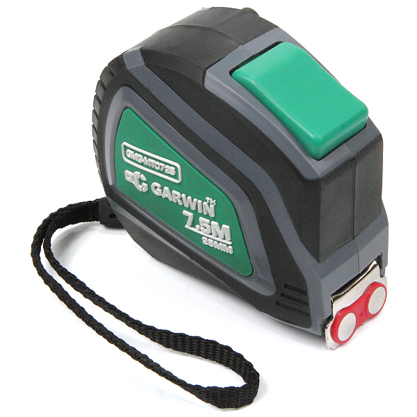 Наличие металлической клипсы на корпусе позволяет крепить инструмент на карманах спецодежды или сумки, а также на поясном ремне. Наручная петля для удобства ношения измерительной рулетки на запястье.
