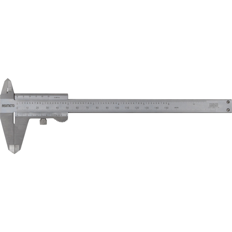 Штангенциркуль нониусный ASIMETO 302-26-2-П серии 302 из нержавеющей стали с губками для внутренних и наружных замеров и плоским глубиномером. Предназначен для измерения линейных размеров малогабаритных деталей.