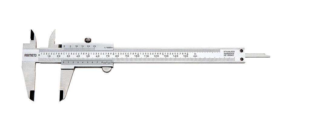 Штангенциркуль нониусный ASIMETO 341-06-0 серии 341 из нержавеющей стали с губками для внутренних и наружных замеров и плоским глубиномером. Предназначен для измерения линейных размеров малогабаритных деталей.