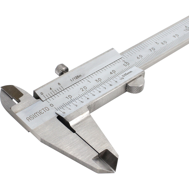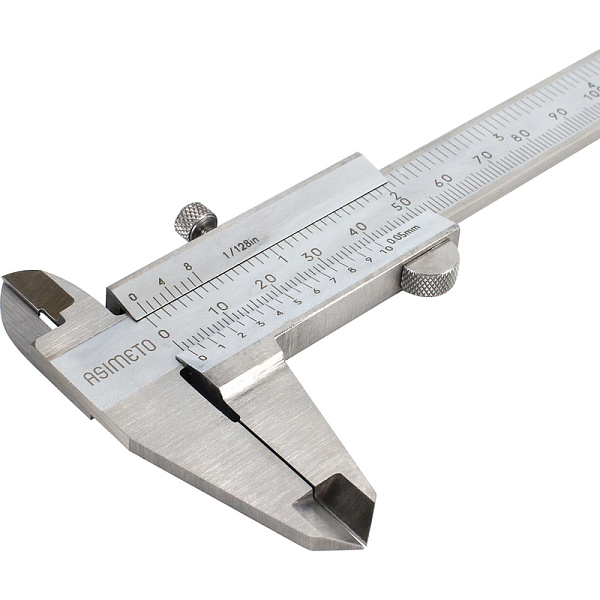 Штангенциркуль нониусный ASIMETO 341-06-2-П серии 341 из нержавеющей стали с губками для внутренних и наружных замеров и плоским глубиномером. Предназначен для измерения линейных размеров малогабаритных деталей.