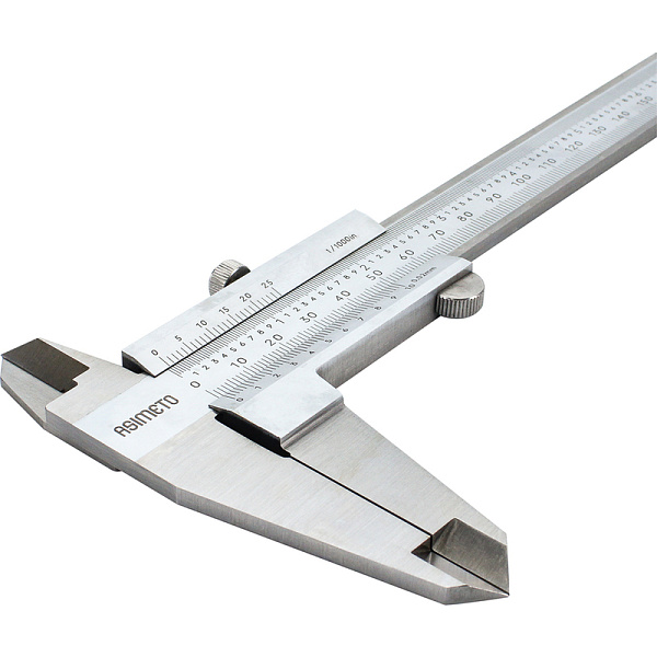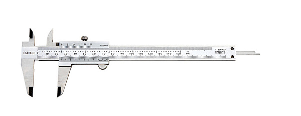 Штангенциркуль нониусный ASIMETO 341-06-4-П серии 341 из нержавеющей стали с губками для внутренних и наружных замеров и плоским глубиномером. Предназначен для измерения линейных размеров малогабаритных деталей.