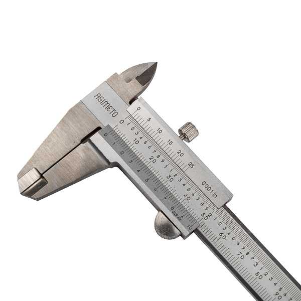 Штангенциркуль нониусный ASIMETO 0341-6-4 серии 341 из нержавеющей стали с губками для внутренних и наружных замеров и плоским глубиномером. Предназначен для измерения линейных размеров малогабаритных деталей.