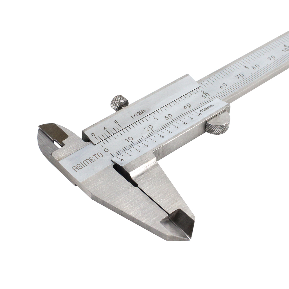 Штангенциркуль нониусный ASIMETO 341-08-0 серии 341 из нержавеющей стали с губками для внутренних и наружных замеров и плоским глубиномером. Предназначен для измерения линейных размеров малогабаритных деталей.