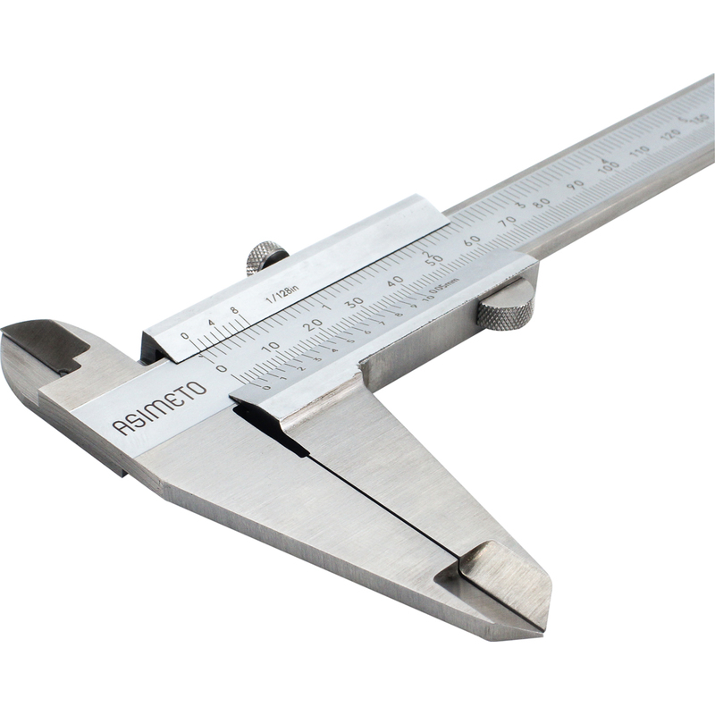Штангенциркуль нониусный ASIMETO 341-12-4-П серии 341 из нержавеющей стали с губками для внутренних и наружных замеров и плоским глубиномером. Предназначен для измерения линейных размеров малогабаритных деталей.