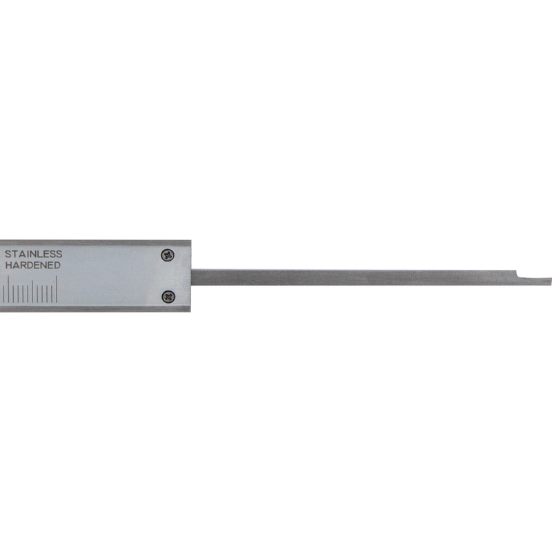 Матовое хромирование основной шкалы и нониуса обеспечивает высокий результат считывания. Плоский глубиномер позволяет измерить глубину отверстий диаметром от 2 мм.
