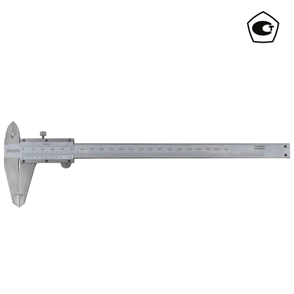 Штангенциркуль нониусный ASIMETO 0343-12-4 серии 343 из нержавеющей стали с губками для внутренних и наружных замеров и плоским глубиномером. Предназначен для измерения линейных размеров малогабаритных деталей.