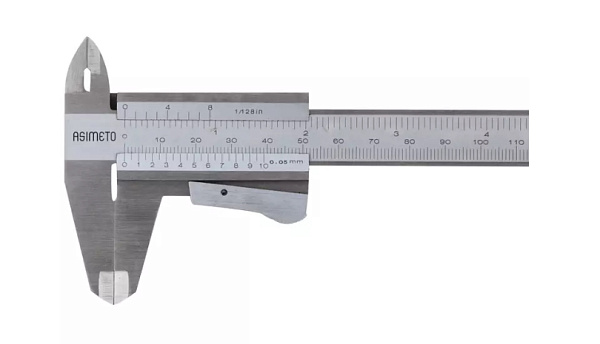 Штангенциркуль нониусный ASIMETO 351-06-0 серии 351 из нержавеющей стали с губками для внутренних и наружных замеров и плоским глубиномером. Предназначен для измерения линейных размеров малогабаритных деталей.