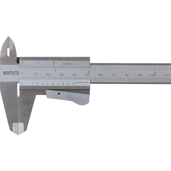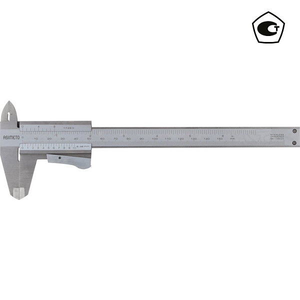 Штангенциркуль нониусный ASIMETO 351-06-4-П серии 351 из нержавеющей стали с губками для внутренних и наружных замеров и плоским глубиномером. Предназначен для измерения линейных размеров малогабаритных деталей.