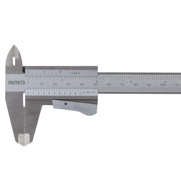 Штангенциркуль нониусный ASIMETO 0351-08-04 серии 351 из нержавеющей стали с губками для внутренних и наружных замеров и плоским глубиномером. Предназначен для измерения линейных размеров малогабаритных деталей.
