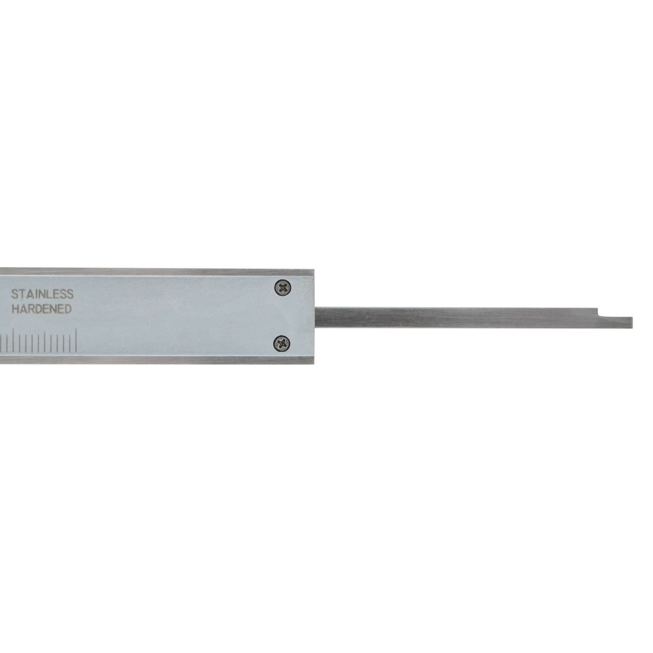 Матовое хромирование основной шкалы и нониуса обеспечивает высокий результат считывания. Плоский глубиномер позволяет измерить глубину отверстий диаметром от 2 мм.
