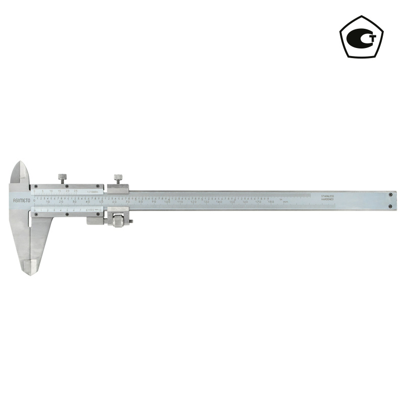 Штангенциркуль нониусный ASIMETO 363-07-6-П серии 363 из нержавеющей стали с губками для внутренних и наружных замеров и плоским глубиномером. Предназначен для измерения линейных размеров малогабаритных деталей.
