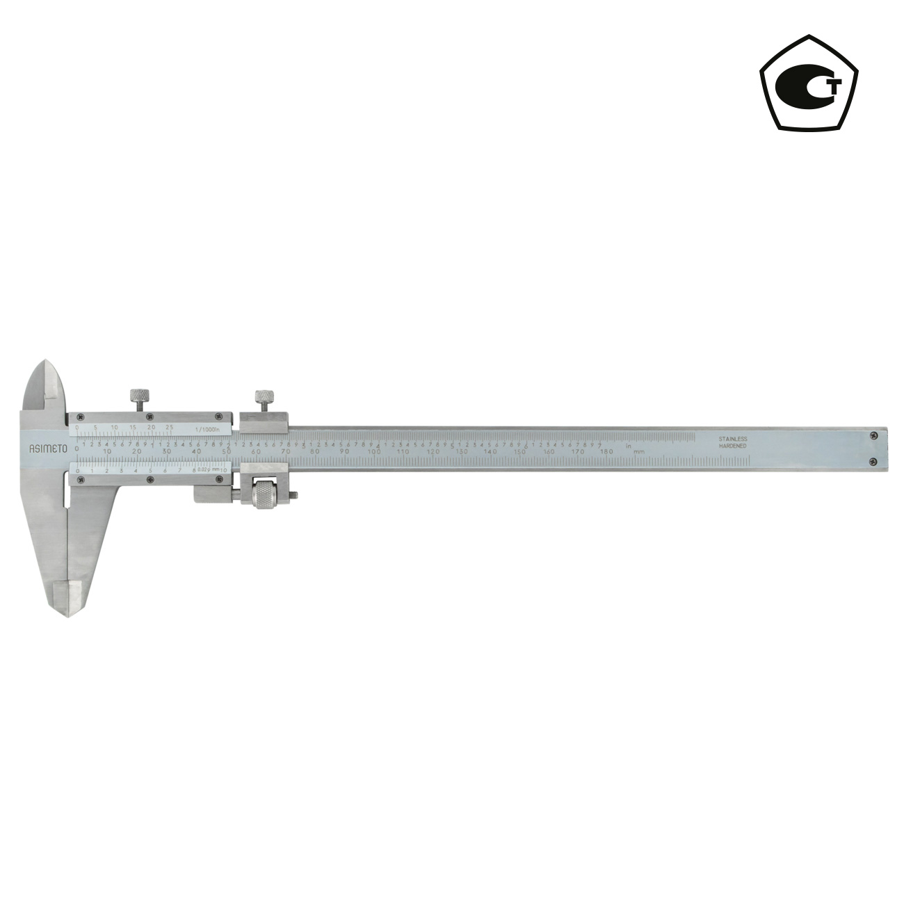 Штангенциркуль нониусный ASIMETO 0363-07-06 серии 363 из нержавеющей стали с губками для внутренних и наружных замеров и плоским глубиномером. Предназначен для измерения линейных размеров малогабаритных деталей.
