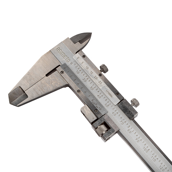 Штангенциркуль нониусный ASIMETO 0363-11-6 серии 363 из нержавеющей стали с губками для внутренних и наружных замеров и плоским глубиномером. Предназначен для измерения линейных размеров малогабаритных деталей.